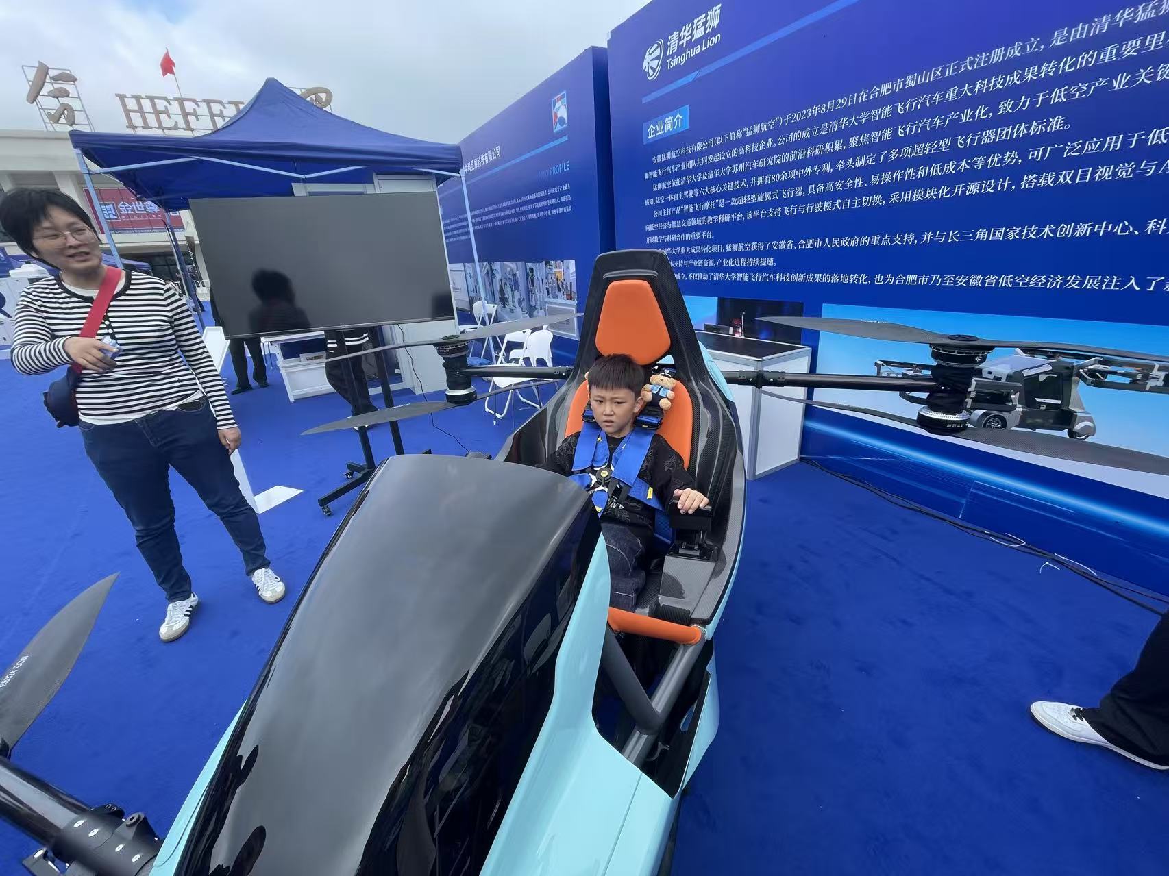 “以后開(kāi)著小飛機(jī)上班也太酷了!”一名小朋友坐在安徽猛獅航空科技有限公司帶來(lái)的智能飛行摩托上,發(fā)出了對(duì)未來(lái)智能交通工具的向往。