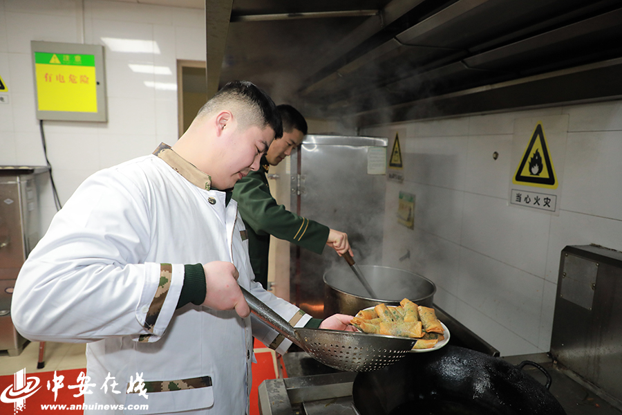 “很好吃,很熱鬧,很滿足。”對于第一次離開家鄉,遠離父母的新兵黃河來講,在軍營里的第一個春節很是難忘。“以前春節都是親戚間串門,現在各個班級里串門,幾十號人,大家圍在一起聊天,很熱鬧。”今年年三十,執勤結束的黃河來到炊事班幫廚,當炊事員遞給他一條魚時,他愣住了,“這是我第一次洗魚,鮮血淋淋,無從下手。”在炊事員的指導下,現在的黃河不僅會洗魚,包春卷、做蛋撻也不在話下。