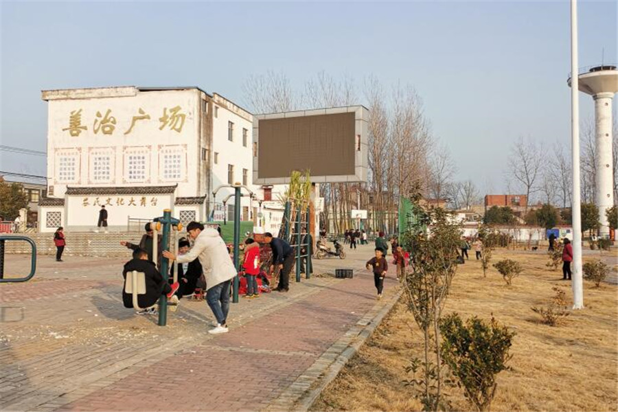 如今,多處公園可選,村民們?cè)诩议T口就可以享受“文化大餐”。特別是善治廣場(chǎng),人氣頗旺。“上廣場(chǎng)去”已經(jīng)成了史莊村村民掛在嘴邊的一句話,健身器材、籃球場(chǎng)、足球場(chǎng)、乒乓球臺(tái)、大舞臺(tái)……這里應(yīng)有盡有,每天來到這里跳廣場(chǎng)舞、打球、鍛煉身體、聊天的村民絡(luò)繹不絕。此外,臨泉縣的“文化下鄉(xiāng)”活動(dòng)也會(huì)在善治廣場(chǎng)舉辦,豐富多樣的表演吸引著周邊村莊村民也會(huì)開車前往。