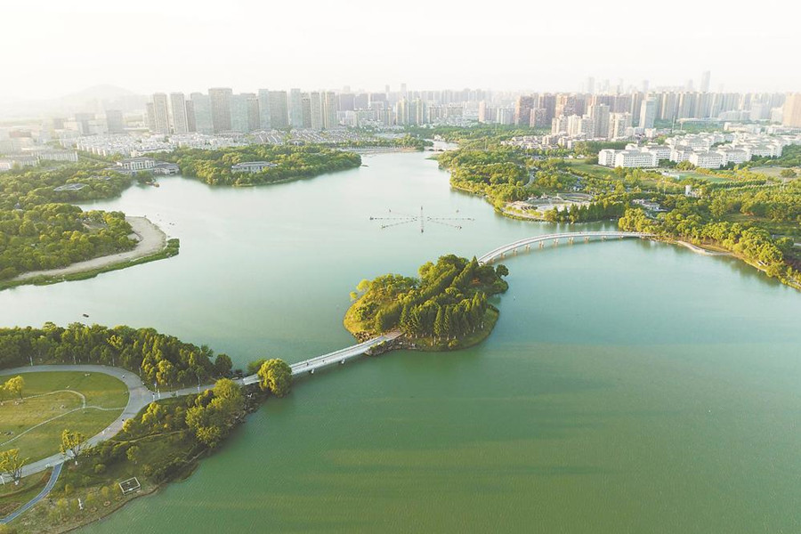 5月9日航拍的合肥翡翠湖公園,植物蓬勃茂盛,湖面波光粼粼。近年來,合肥推進生態(tài)文明建設,加快構建林城相融、城湖共生、城在園中的城市綠色新形態(tài)。“十四五”期間,合肥還將打造綠色宜居魅力都市區(qū),連接董鋪水庫、大蜀山森林公園、王咀湖公園、濱湖國家森林公園、環(huán)城公園等,構建公園綠環(huán),提升公園綠地服務半徑。
