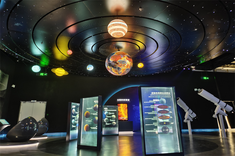 新館總建筑面積6萬平方米,共設置9個常設展廳、1個科學秀場、1個臨時展廳,展品總數627件,其中國內首創展品數110件,占比17.5%。一樓設置《科學征程》《科技強國》兩個展廳,二樓設置《減碳之路》《健康之本》《童趣樂園》三個展廳,三樓設置《天地探秘》《數字探夢》《量子探微》《科創探趣》四個展廳,全力打造成全省重要的科學家精神教育基地、前沿科技體驗基地、公共安全健康教育基地和科學教育資源匯集平臺。
