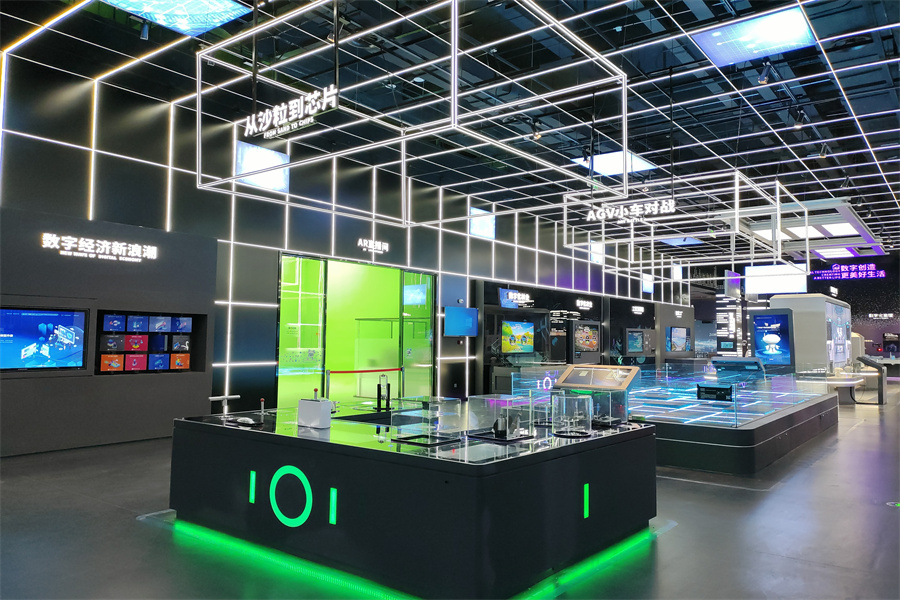 展廳設計突出科技館“實施觀眾可參與的互動性科普展覽、教育活動”核心功能,常設展廳面積約1.7萬平方米,可參與、互動的展品達到展品總數的90%以上,同時積極運用裸眼3D、虛擬現實、增強現實、全息成像、幻影成像、融合投影、空氣觸摸互動系統等先進技術,進一步提高展品的趣味性。