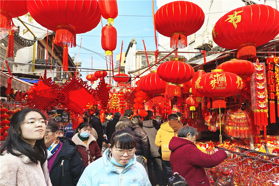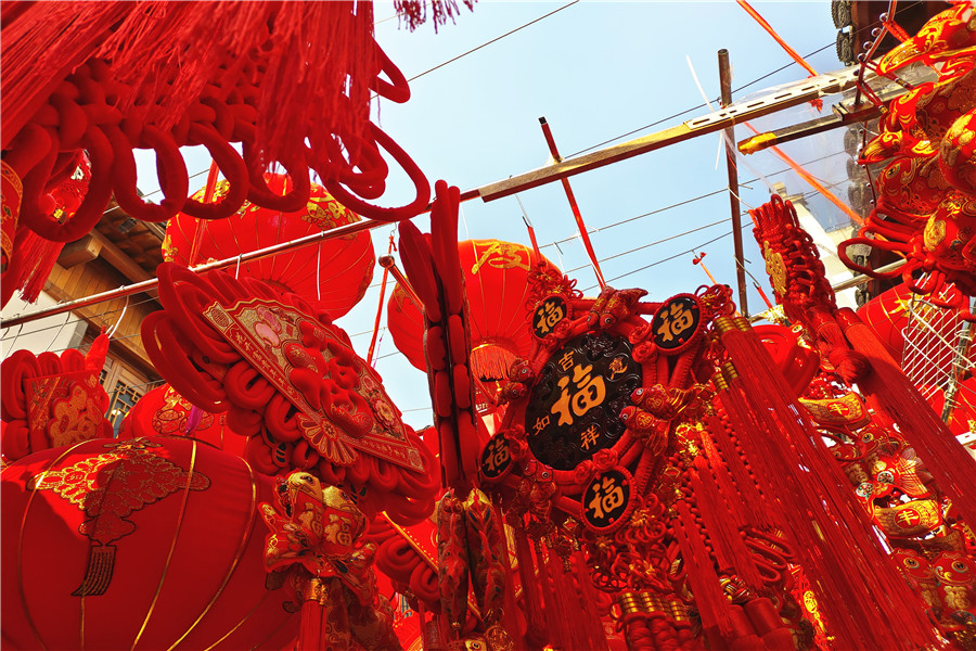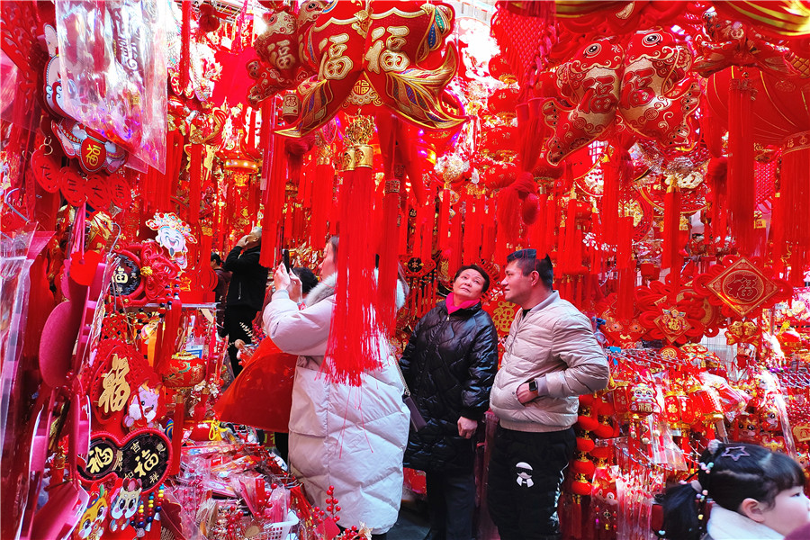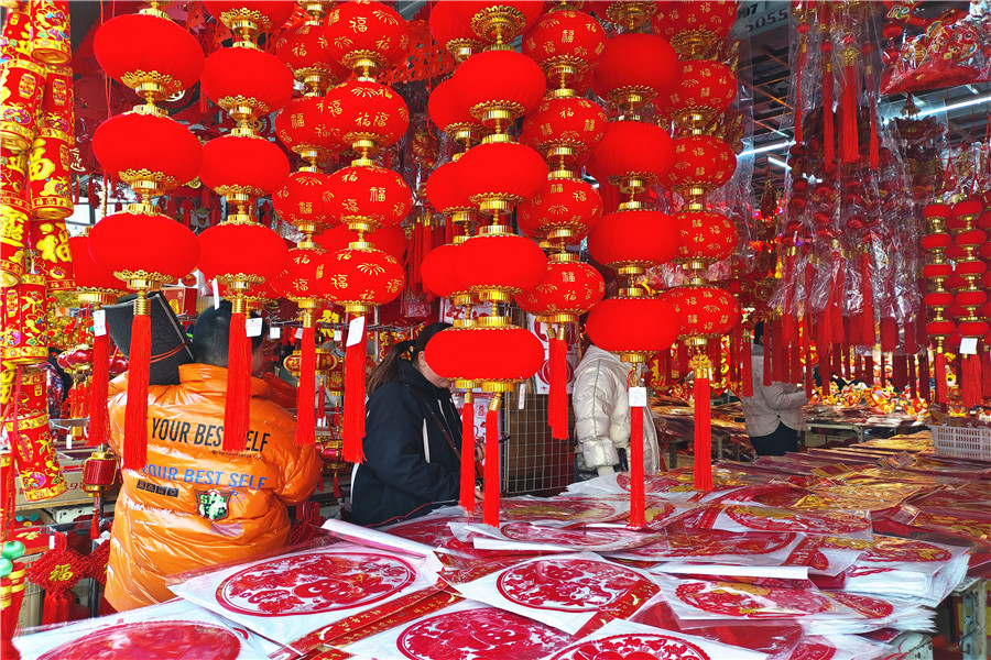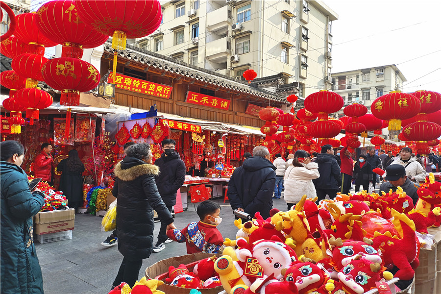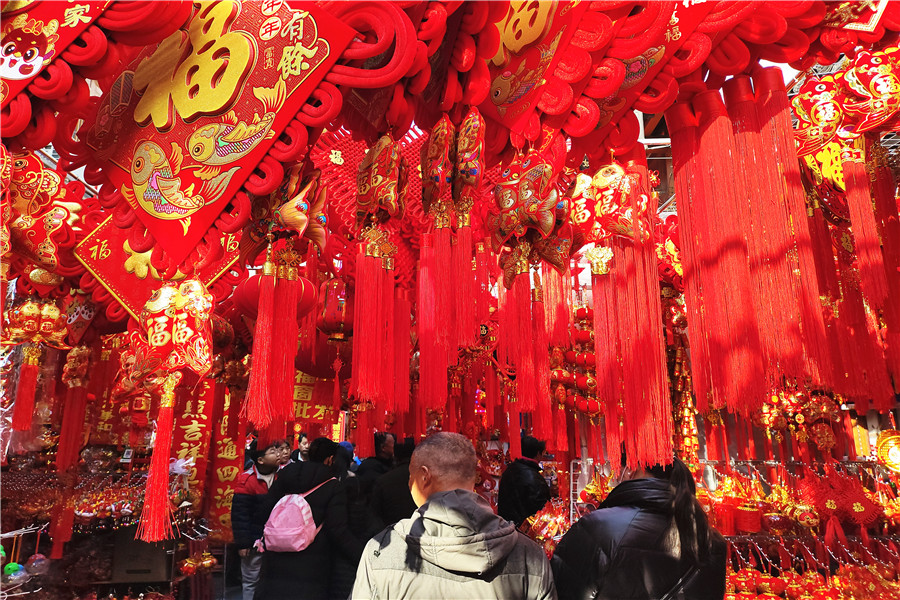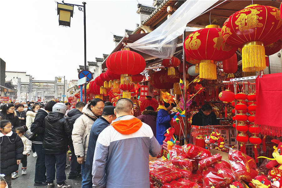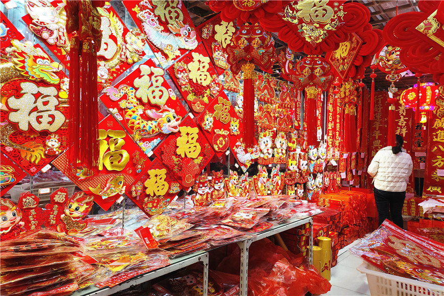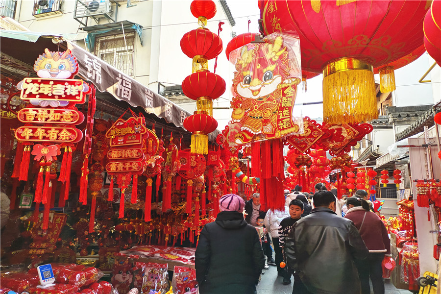 本網訊(記者 史洪芳)春節臨近,合肥市城隍廟的一條商業街上,各家店鋪擺滿了春聯、福字以及造型多樣、品種豐富的“龍”元素新年飾品,形成了一片紅色的海洋,散發著濃濃的年味,吸引眾多市民前往挑選采購。