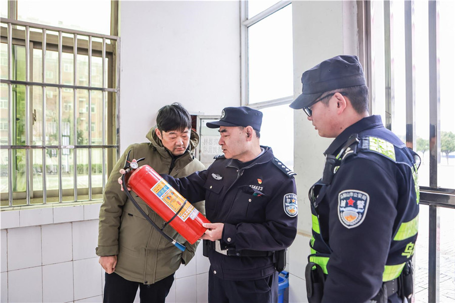 2月23日,和縣公安局烏江派出所組織民警來到轄區(qū)內(nèi)的中小學(xué)校,對校園內(nèi)的消防安全器材、門禁系統(tǒng)、監(jiān)控系統(tǒng)、一鍵報(bào)警系統(tǒng)等進(jìn)行檢查 。通訊員 楊杉杉 攝