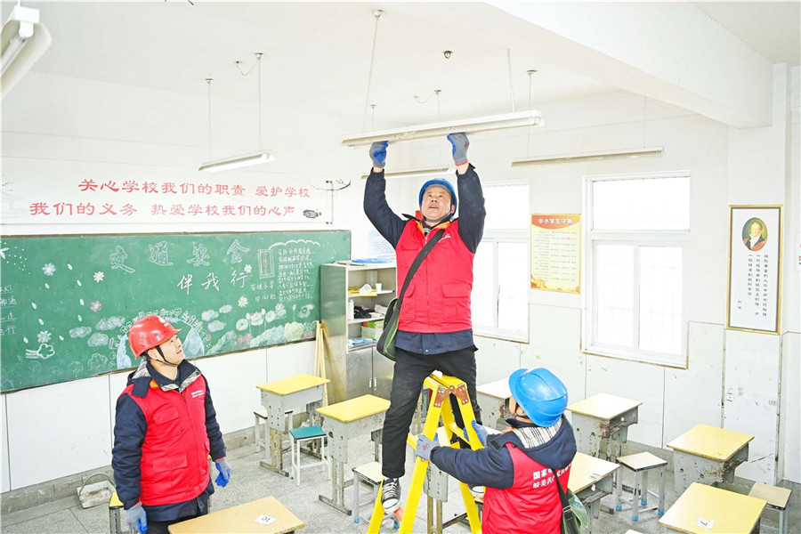 2月24日,明光市供電公司工作人員在該市石壩鎮(zhèn)中心希望小學(xué)對供電線路、校舍照明等電力設(shè)施進(jìn)行檢查維修。通訊員 宋衛(wèi)星 呂凌波 攝