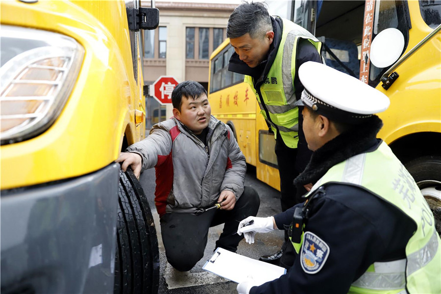日前,蕪湖市交警和車輛維修專業(yè)技術(shù)人員在對即將投入新學(xué)期運(yùn)營的校車進(jìn)行全面安全檢查。通訊員 陳效寶 攝