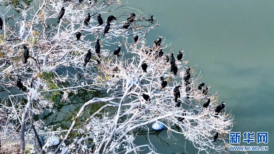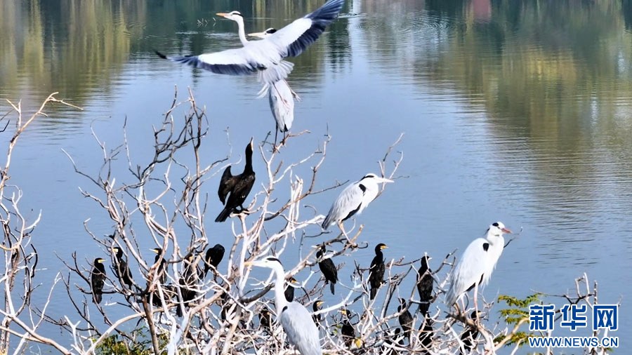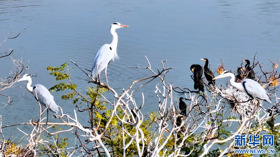 寒冬時(shí)節(jié),成群的白鷺、蒼鷺、鸕鶿,為安徽省潁上縣八里河增添了靈動的氣息,它們或棲息枝頭或展翅嬉戲,與周圍的景色相映成趣,盡顯生態(tài)之美。(徐紅梅 房子儀)