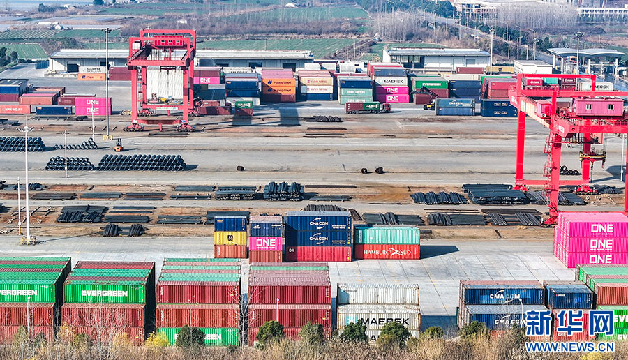 新年伊始,在安徽馬鞍山市鄭蒲港新區(qū)港口碼頭,一派繁忙景象,全力沖刺新年“開門紅”(1月2日攝)。