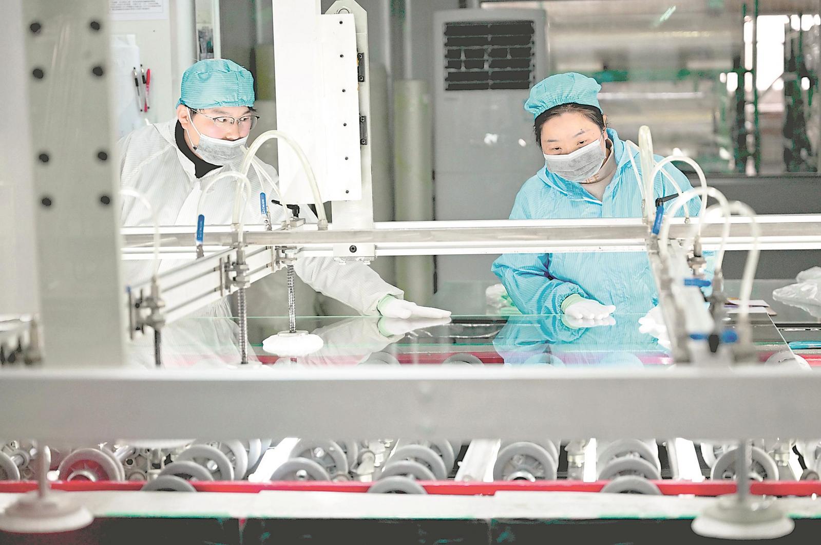 2月5日,在位于亳州蕪湖現代產業園區的信義玻璃(亳州)有限公司內,工人在生產車間里忙碌。通訊員 劉勤利 攝