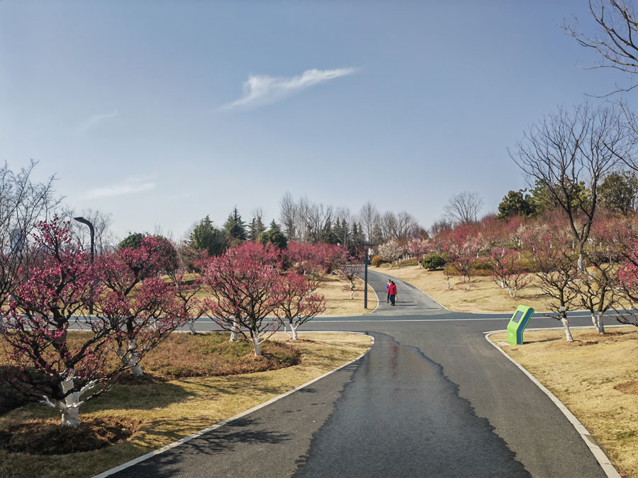 2月18日,天朗氣清,陽光明媚。合肥園博園安徽園內的梅花次第綻放,春意漸濃。(
