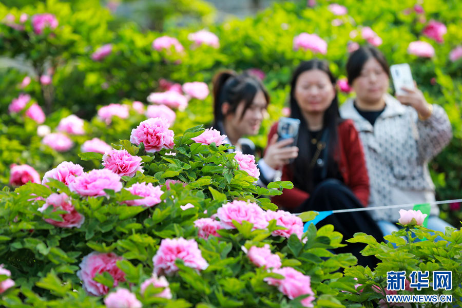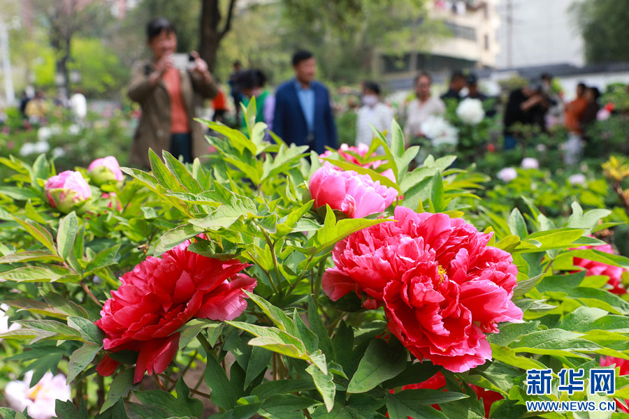??近日,安徽省淮北市相山公園牡丹園內的牡丹花次第綻放,姹紫嫣紅的花朵將園區裝扮得春意盎然,吸引眾多游客前來參觀游玩。新華網發(萬善朝 攝)