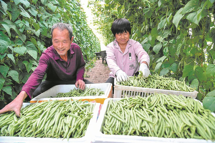 5月6日,亳州市譙城區五馬鎮常莊村蔬菜種植基地,農民在采摘四季豆供應市場。近年來,譙城區積極引導各村因地制宜發展種植業,拓寬農民增收渠道。通訊員 張劉艷 攝