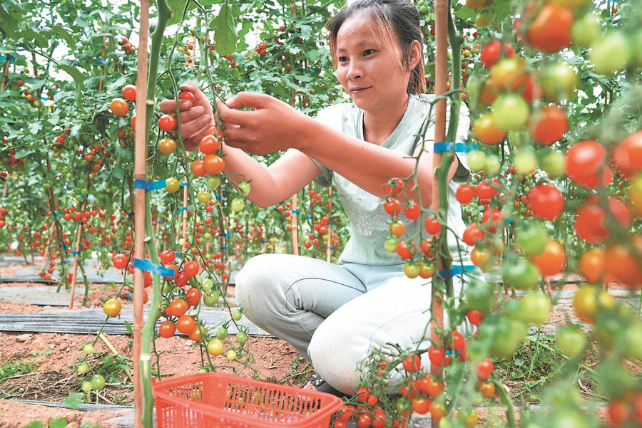 5月6日,在銅陵市樅陽縣雨壇鎮新民村,農戶在采摘圣女果。近年來,雨壇鎮鼓勵各村結合自身資源優勢,發展特色農業,促進農業提質增效、農民增收致富。通訊員 王章志 汪翔 攝