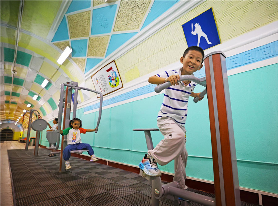 7月2日,蕪湖市鏡湖區(qū)赭山公園隱園防空洞免費休閑納涼點,小朋友們在鍛煉身體。該納涼點自7月1日至9月15日向市民免費開放。本報通訊員 王玉實 徐萍 攝