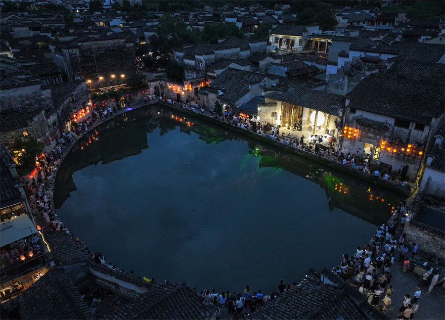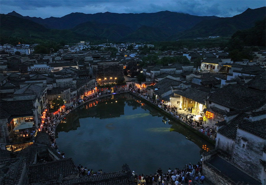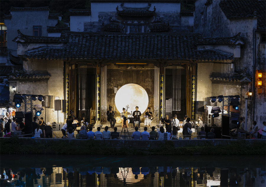 7月8日,在安徽省黃山市黟縣宏村,“月沼樂夜”公益音樂會浪漫上演。