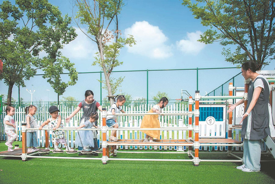 日前,來安縣人民醫院托育中心的孩子在老師的帶領下,正在玩感統滑滑梯。該中心專為醫院職工子女開設2個托班40個托位,配師資9人,是滁州首家正式運營的公立醫院普惠托育園。2024年,該醫院入圍全國“建設家庭友好型工作場所典型案例”,榮獲“2024年度全國愛心托育用人單位”稱號。通訊員 呂華 攝