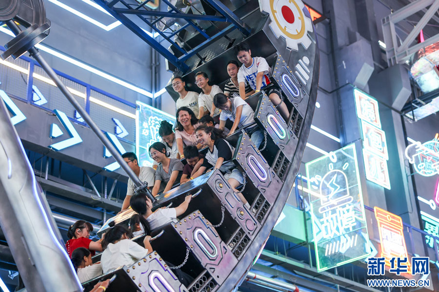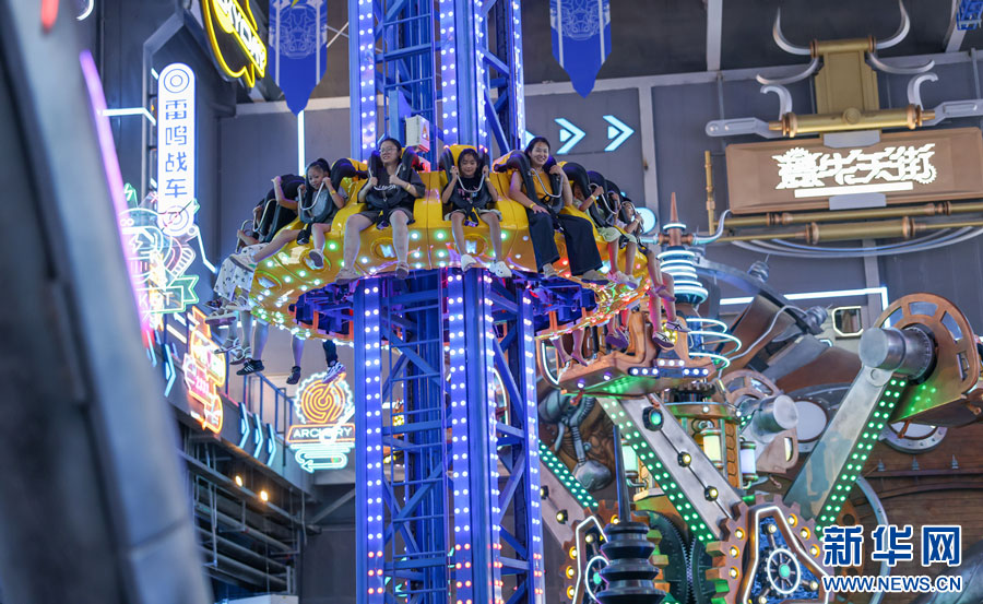 游客在夔牛天街體驗(yàn)游樂(lè)項(xiàng)目。新華網(wǎng)發(fā)(王文 攝)