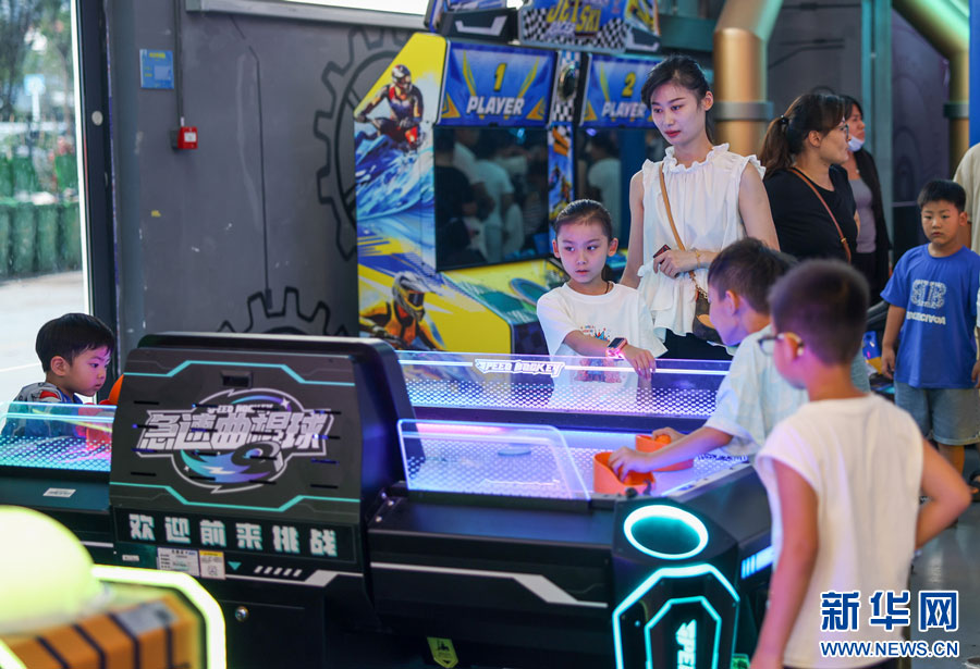??近日,在安徽省淮北市相山區(qū)夔牛天街,眾多家長(zhǎng)趁暑期帶著孩子前來(lái)游玩。