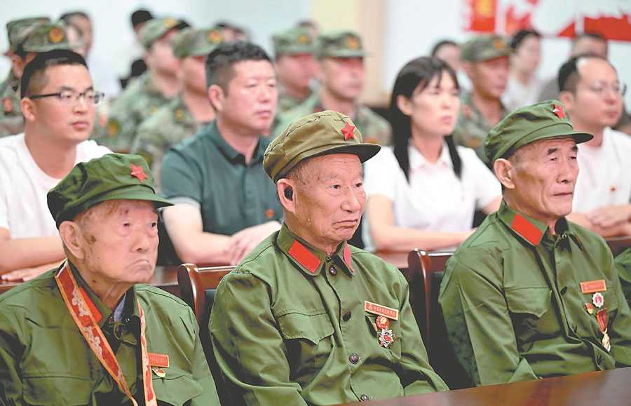 9月3日,在亳州市利辛縣永興鎮諸王社區,老黨員、退役軍人、基干民兵和干部群眾集中收看紀念中國人民抗日戰爭暨世界反法西斯戰爭勝利80周年大會直播。通訊員 劉勤利 何永芹 攝