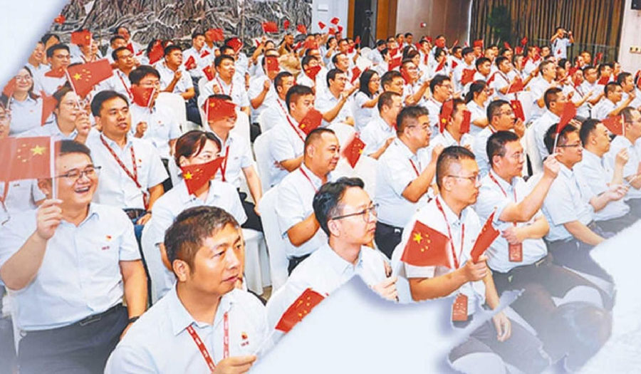 9月3日,中國電子科技集團公司第三十八研究所多功能廳,200多名黨員干部職工集中觀看紀念中國人民抗日戰爭暨世界反法西斯戰爭勝利80周年大會現場直播。記者 范柏文 攝
