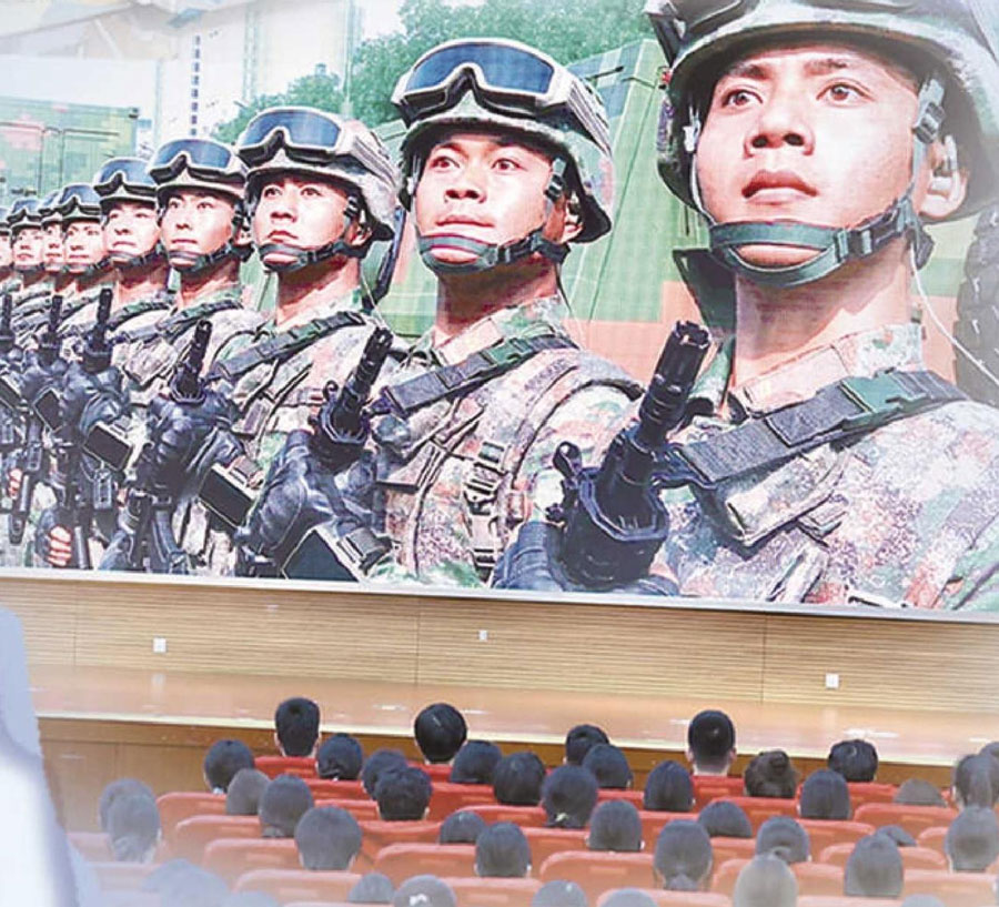 9月3日,合肥工業大學翡翠湖校區報告廳內,600余名師生集中收看紀念中國人民抗日戰爭暨世界反法西斯戰爭勝利80周年大會直播。記者 王蘭蘭 攝