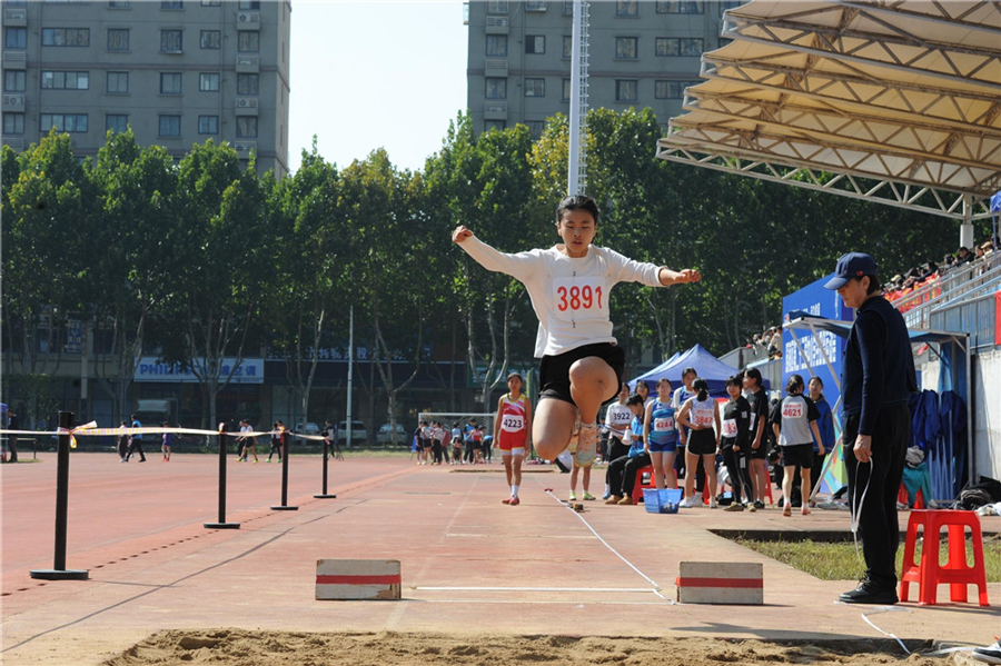 10月22日,合肥市瑤海全民健身中心,學(xué)生們正在參加比賽。當(dāng)天,瑤海區(qū)舉行第二十三屆中小學(xué)生田徑運(yùn)動(dòng)會(huì),來(lái)自全區(qū)43所中小學(xué)的682名運(yùn)動(dòng)員在68個(gè)競(jìng)賽項(xiàng)目中展開角逐。本報(bào)通訊員 熊偉 攝