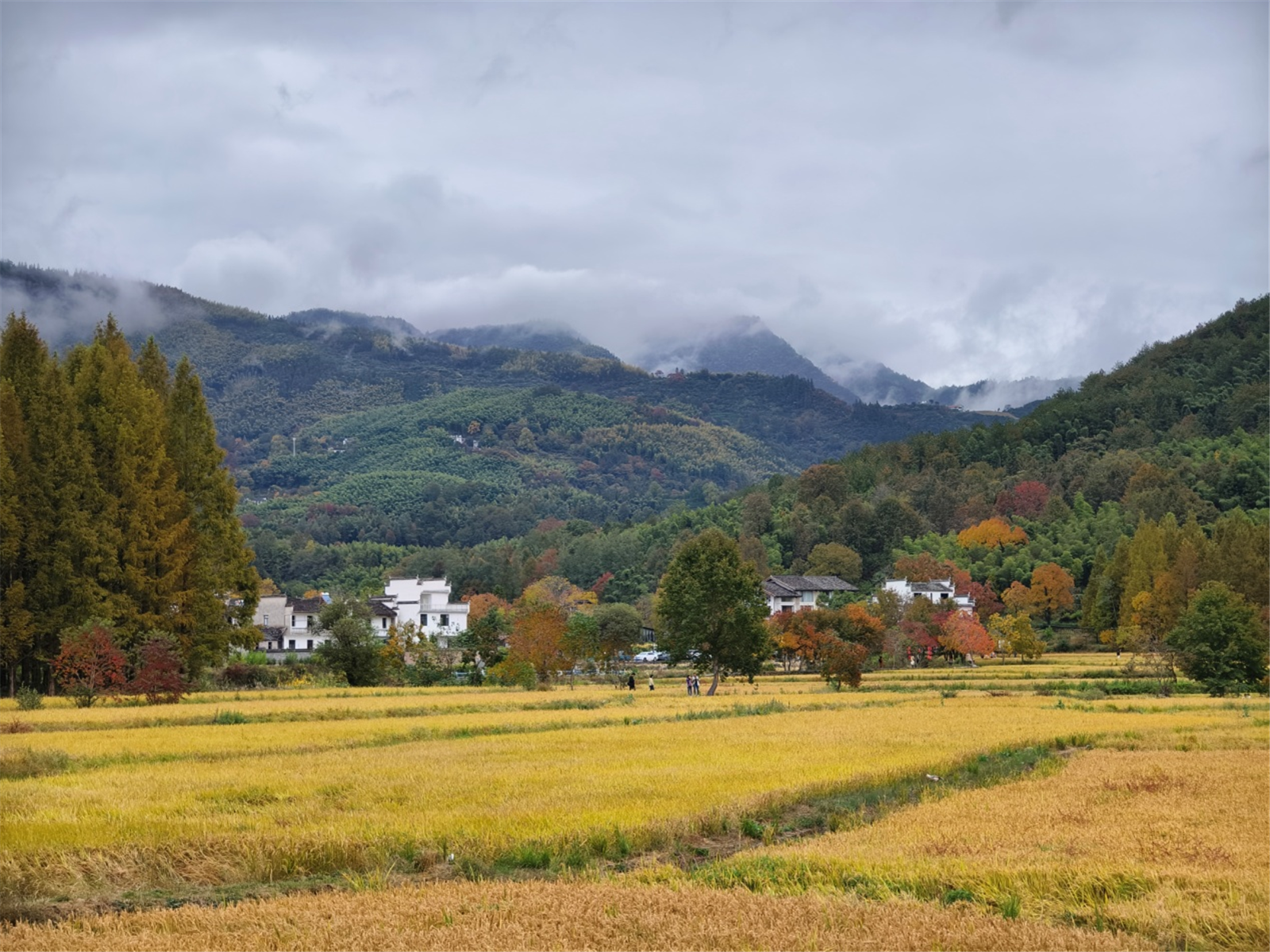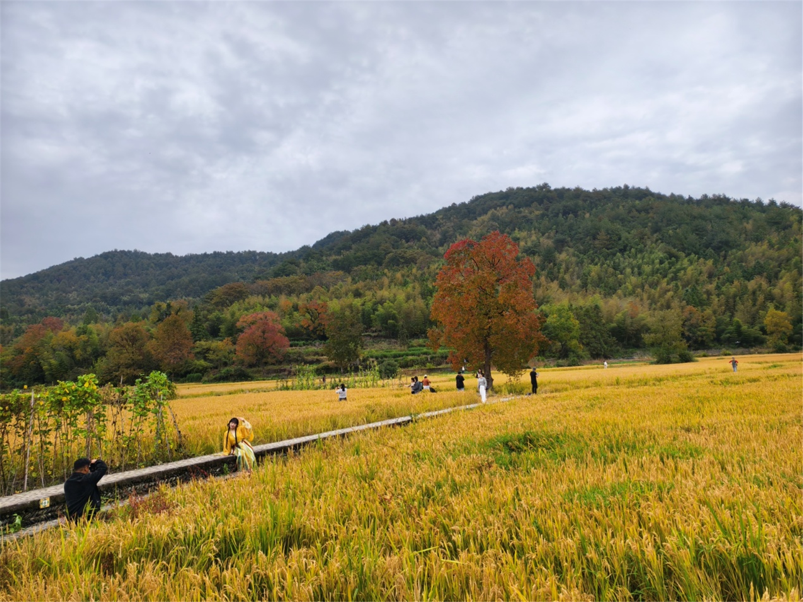 近日,正值末秋時(shí)節(jié),黃山市黟縣宏村和塔川村已成為色彩的王國。稻田漸次金黃,烏桕樹由綠轉(zhuǎn)黃、由黃染紅,粉墻黛瓦的徽派民居錯(cuò)落有致點(diǎn)綴其間,云霧繚繞的遠(yuǎn)山呈現(xiàn)出別樣的水墨意境。在秋陽的映襯下,皖南大地五彩繽紛,構(gòu)成一幅濃墨重彩的美麗田園畫卷,令游客流連忘返。