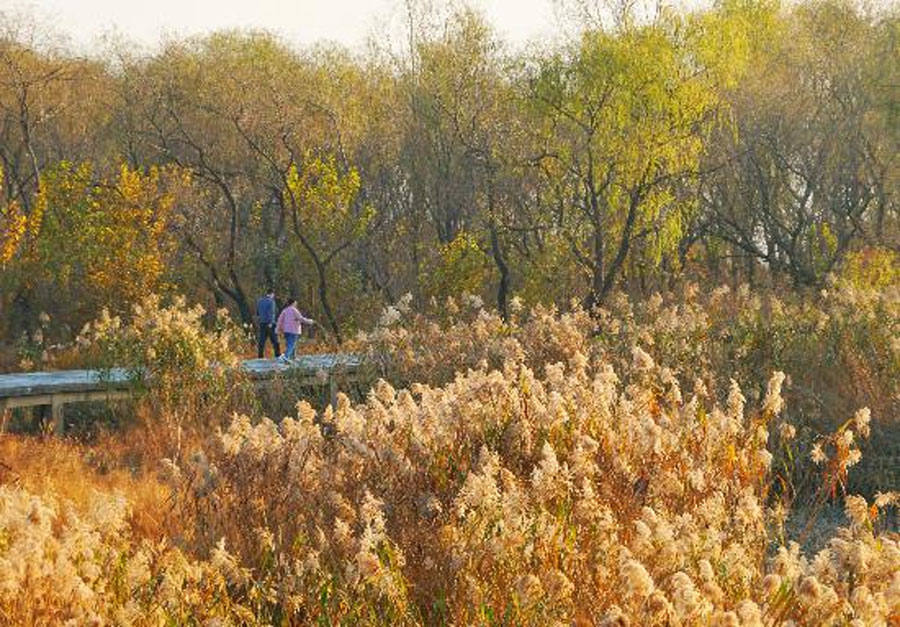 12月7日,巢湖中垾濕地冬日風光正好。暖陽灑在濕地之上,成片蘆花泛著暖黃,隨風輕搖如波浪。岸邊水柳葉染金黃,與蘆花相映成趣,盡顯自然之韻。合新聞記者 宋陽東