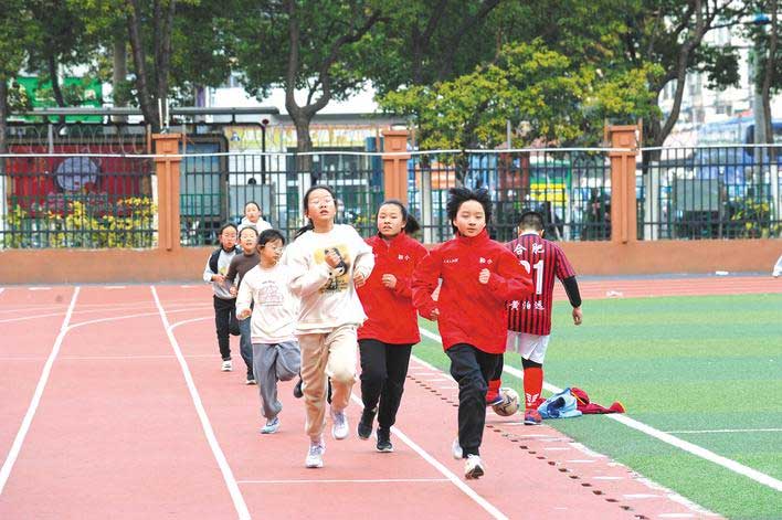 合肥市和平小學,學生們正在進行跑步訓練。熊偉 攝