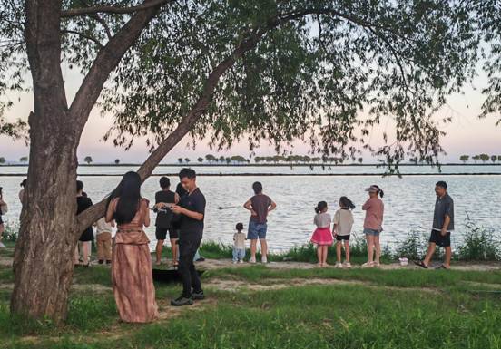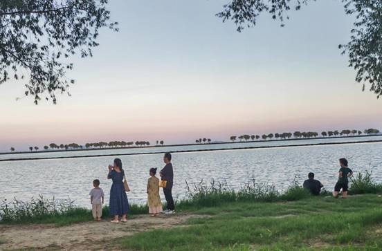 8月17日,恰逢周日,安徽省巢湖湖濱國(guó)家濕地公園里游人如織,有的在促膝長(zhǎng)談,有的在拍照留念,有的在觀賞美景,大家都樂在其中。