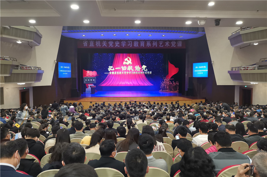 本網訊(記者 史洪芳)4月16日上午,《把一切獻給黨》——安徽省直機關黨史學習教育系列藝術黨課主題歌舞演出在安徽大劇院上演。全場坐無虛席,1000余名黨員干部職工觀看演出。