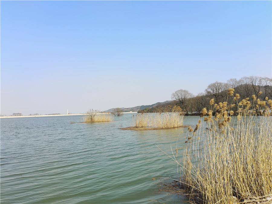 在廬江縣的另一邊——湯池鎮(zhèn),大家欣賞到了不一樣的原生態(tài)自然風(fēng)光。漫步金湯湖畔,只見藍天與碧水相對,水面波光粼粼,岸邊和湖中長著一叢叢蘆葦,偶爾還有水鳥飛過。金湯湖坐落在湯池鎮(zhèn)綿延的群山腳下,為1958年人工興建的一座水庫,擁有著自然生態(tài)之美。