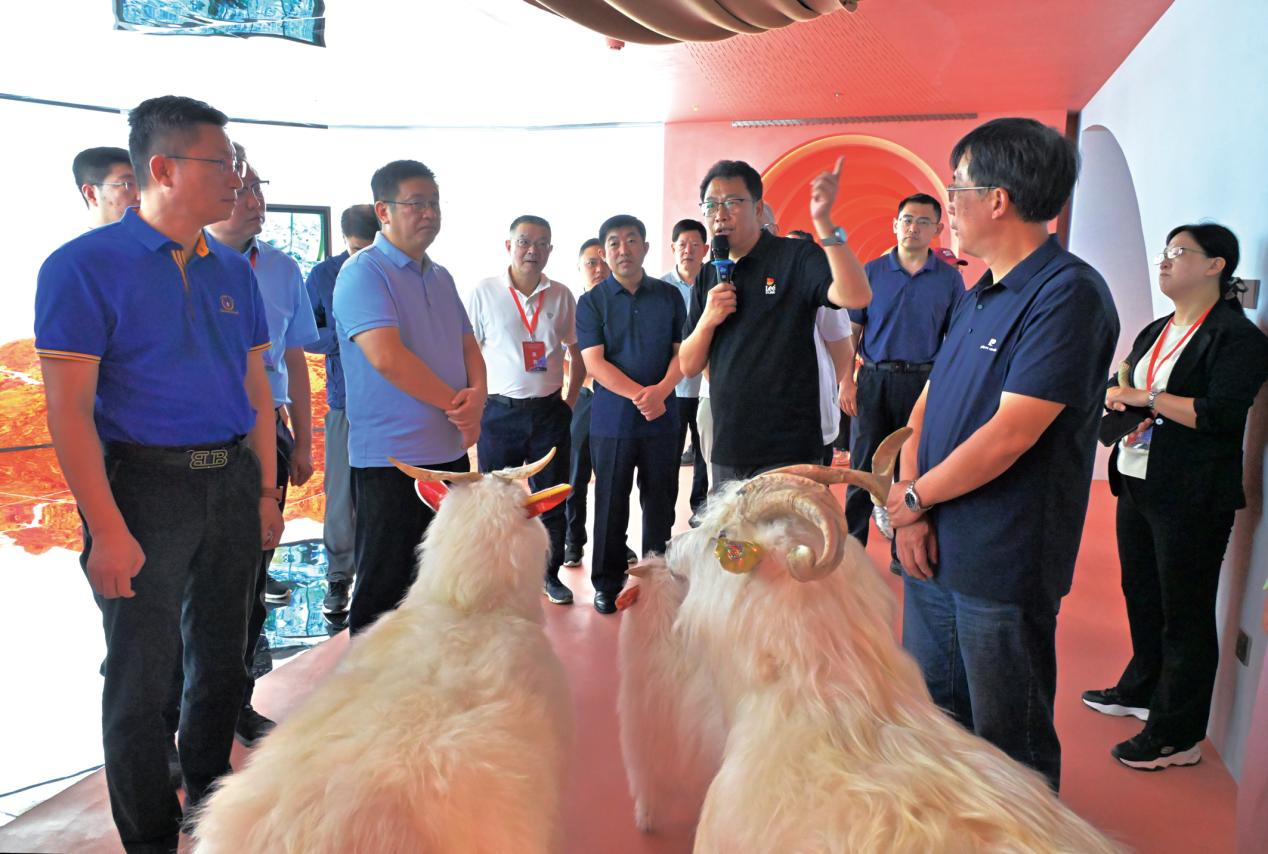赤峰東黎羊絨股份有限公司負(fù)責(zé)人向采訪團(tuán)介紹企業(yè)發(fā)展情況。張耀東/攝
